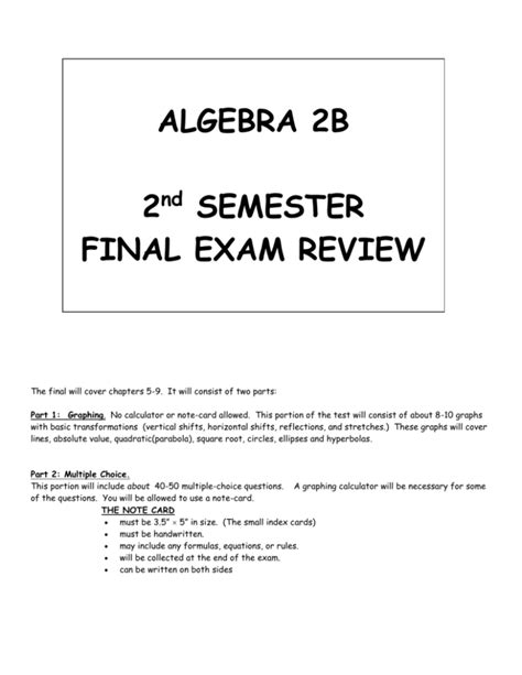 Read Algebra 2b Final Exam Review 2014 Answers Kindle Editon